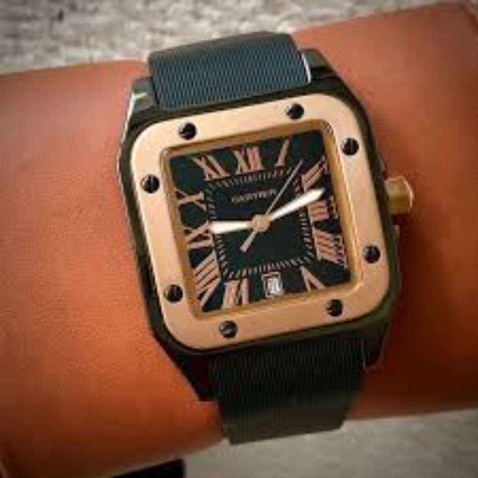 Elevate your timepiece collection with the Cartier Black Watch. This striking watch showcases Cartier’s timeless elegance, featuring a sleek black dial and a contemporary silhouette perfect for casual and formal occasions. The durable silicone straps offer unmatched comfort and flexibility, ensuring that this watch looks great and feels great on your wrist.